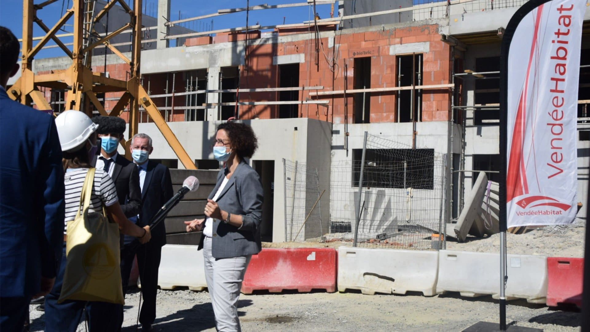 La Ministre du Logement Emmanuelle Wargon était en visite sur l’un des chantier de Vendée Habitat, sur les Hauts de Montaigu. Ce chantier de 22 logements, d’un pôle médical et d’une pharmacie, est au cœur d’un programme ambitieux de renouvellement urbain mené conjointement par la ville de Montaigu-Vendée et Vendée Habitat.