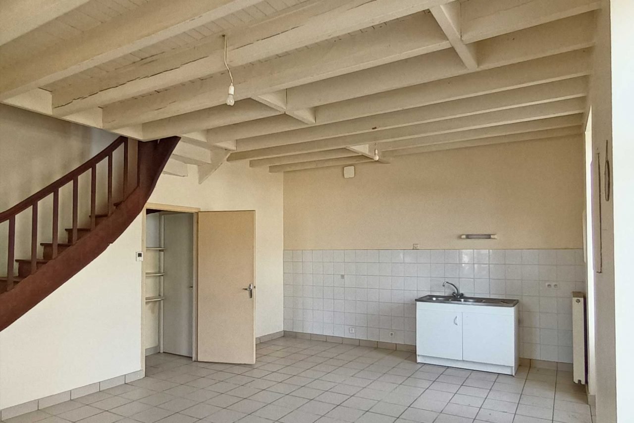 Une grande pièce de vie au rez-de-chaussée, 2 chambres et une salle d'eau à l'étage.